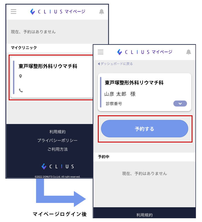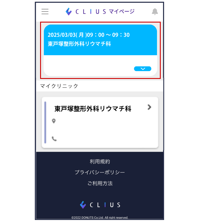 患者様のマイページにてマイクリニックを登録した場合、以下の操作が可能です。